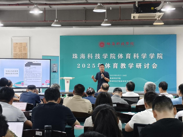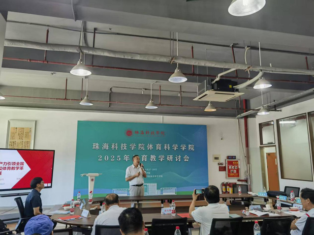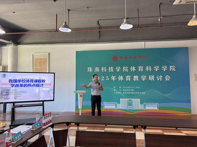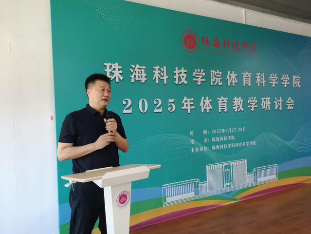 为深入贯彻落实新时代高等教育体育工作要求,持续推进体育教学改革创新,加强校际交流与合作,全面提升体育教育教学质量与人才培养水平,珠海科技学院体育科学学院于2025年9月27日至28日在学校工会活动中心成功举办了“2025年体育教学研讨会”。本次会议汇聚了哈尔滨体育学院、韶关学院体育学院、肇庆学院体育与健康学院、韩山师范学院体育学院、广东白云学院体育学院、广州体育学院、广东科学技术职业学院体育健康学院等高校的专家学者。珠海科技学院副校长黄学寿出席大会并致辞。来自各高校体育学院的院长、副院长、体育部主任、系部主任、教学名师、骨干教师、教学研究人员以及本校体育科学学院全体教师共百余人参会,共同围绕当前体育教育发展的热点问题展开深入研讨。