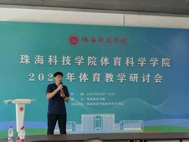 广东科学技术职业学院体育健康学院院长侯德红则以《新质生产力引领全国高等院校体育教学革新与发展》为题,阐释新质生产力的内涵及其在体育教育领域的应用前景,从教学模式转型、课程体系优化、评价机制创新到资源智能供给等方面,提出以科技驱动教学变革的具体路径,展现前瞻性思考。