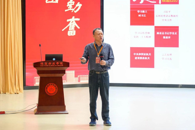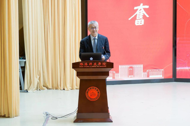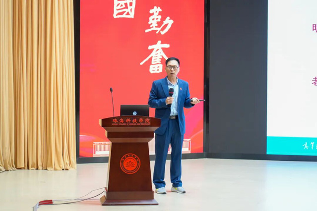 ▲珠海科技学院党委委员、纪委书记、副校长黄学寿主持开幕式