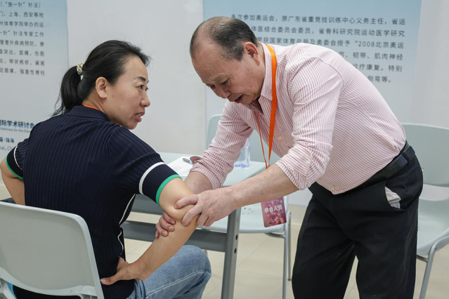 这些专家为参会者提供一对一专家问诊、针灸推拿正骨体验以及个性化康复建议,针对腰椎间盘突出、骨关节病等问题给出专业建议与健康生活方式指导。他们还举办“关爱健康·免费义诊”公益活动,将学术成果转化为实用服务,以造福大众。活动现场人潮涌动,排起长队,就诊者接连不断,中医诊疗专家们竭诚为大家服务,呈现出运动康复咨询服务的繁盛景象,为大会增添了浓重的一笔。