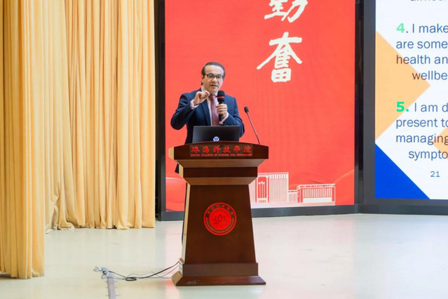 研讨会在独具闽南特色的英歌舞和二十四节气鼓表演中拉开序幕。在研讨会议召开之际,副校长黄学寿介绍了出席研讨会的Klaus - Michael Braumann、Jujiao Kuang、Emad Mallick等国外专家及嘉宾代表,对各位专家莅临指导表示热烈欢迎与诚挚谢意。他指出,老年运动康养是践行大健康观念、服务国家战略的核心领域。此次研讨会由学校承办,既是对学校学科建设成果的认可,也为校地合作、校企合作以及国际合作搭建了重要平台。学校将以此为契机,深化教学改革,力求实现产学研协同发展,推动大健康与运动康养学科专业群的进步。期望以研讨会为桥梁,持续加强与国内外专家的合作,助力珠海科技学院人才培养实现高质量发展。